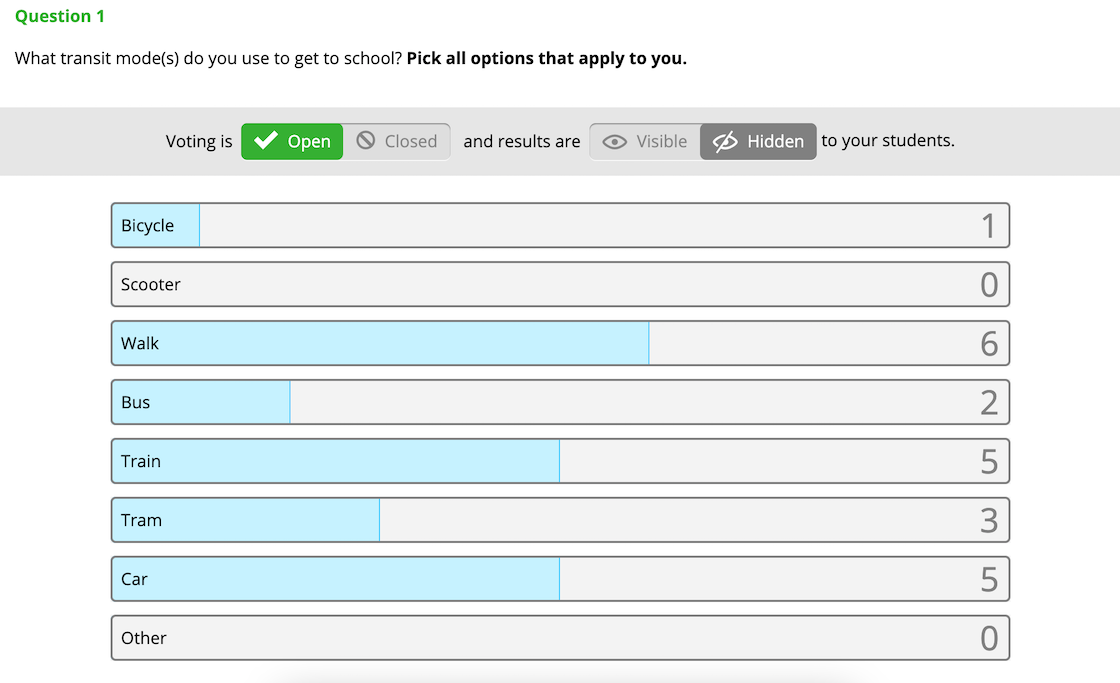 Collaborative question types, such as Live Polls and Live Brainstorms, are intentionally used to get students working together and communicating with one another. Collaborative activities, including engineering challenges and Socratic seminars, require students to collectively negotiate roles, responsibilities and outcomes.
