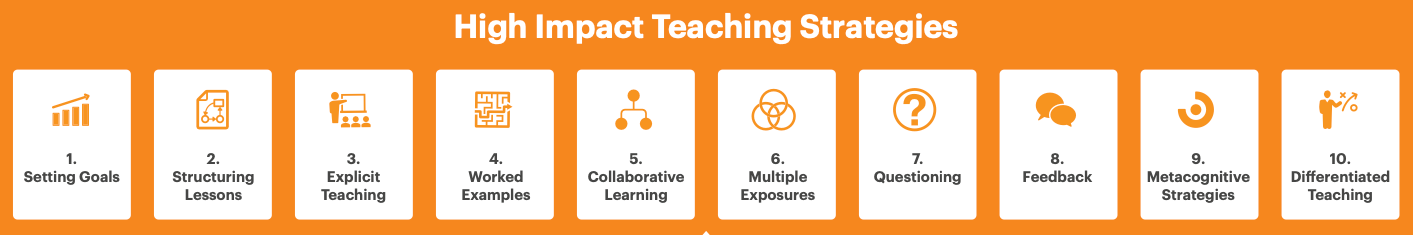 High Impact Teaching Strategies (HITS) are the fourth component of the VTLM. HITS are 10 reliable, evidence-based instructional practices recommended by the Victorian Department of Education to deliver learning outcomes. Stile is specifically designed to support the implementation of HITS in the science classroom.
