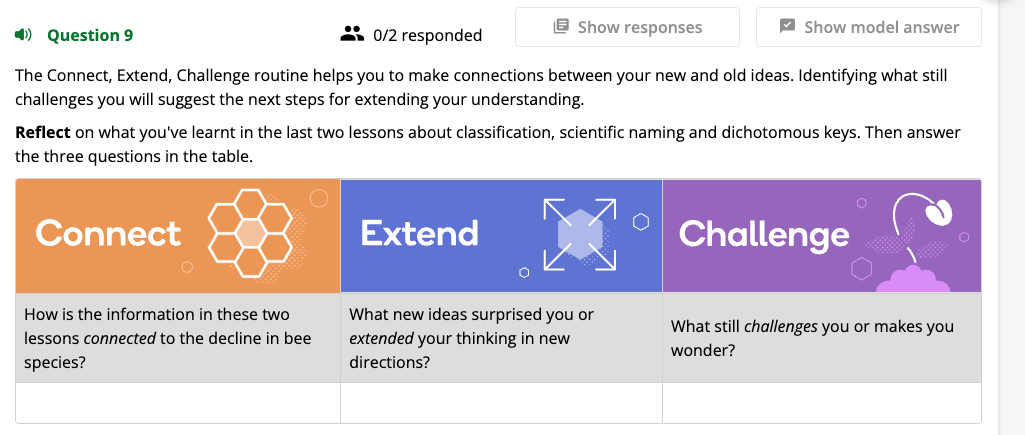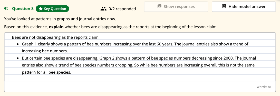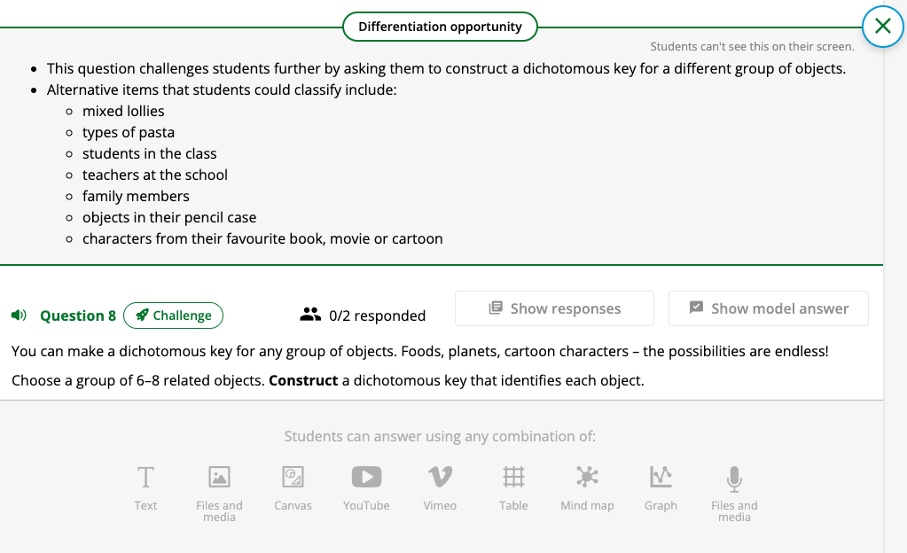 Both model answers and the use of teacher modelling in Teach Mode provide students with access to worked examples that demonstrate the steps required to answer a question. These provide scaffolding that supports students to acquire new knowledge and skills.
