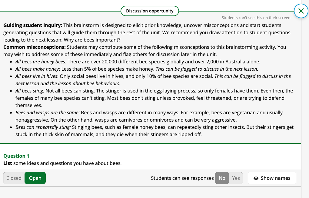 Stile’s highly interactive teaching and learning platform is built on the connection between teachers and students. Teachers can see student responses as they work, provide them with timely feedback, and facilitate class discussions via stimulus material on Stile. These interactions are the foundation of student–teacher relationships. By providing teachers with resources to support the planning, teaching and assessment processes, Stile gives teachers more time to focus on their students and on building meaningful relationships that form a foundation for effective teaching and learning. Finally, through teaching notes in lessons, Stile provides guidance to teachers on connecting the learning to students’ experiences, community and backgrounds. Making these connections further supports teachers in developing relationships with students.