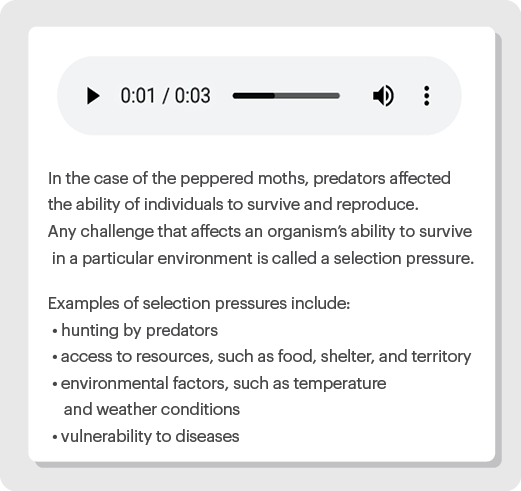Stile strives to create lessons and units that engage auditory, visual, and kinesthetic learning. For example, Stile lessons frequently deploy various multimedia to engage learners and deepen their understanding of complex scientific concepts. This includes images, graphics, videos, simulations, etc.