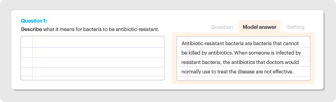 Stile lessons include model answers where students are asked to apply concepts through written expression. These writing exemplars provide students with examples of proficient written responses in addition to providing the teacher with a model for building sentence frames. Teachers also have the flexibility to revise or create their own model answers.