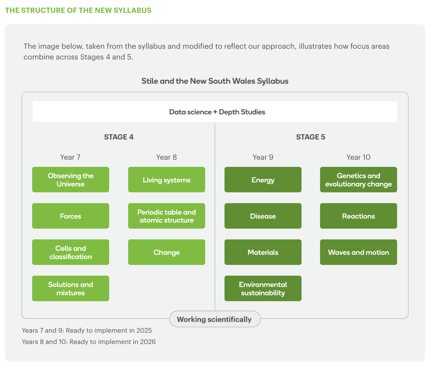 - Working scientifically processes have been integrated into focus areas