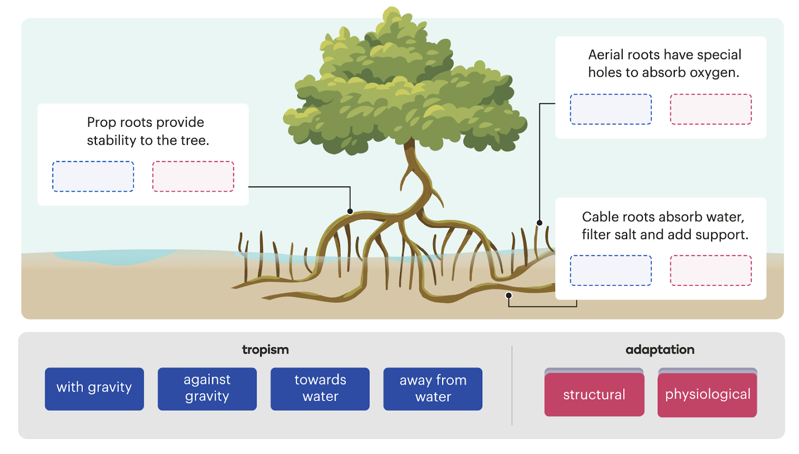 Learners are introduced to tropisms to understand how plants respond to their environment through adaptations. It helps clarify language about “behaviour” in plants, and gives students a clear framework to work with.